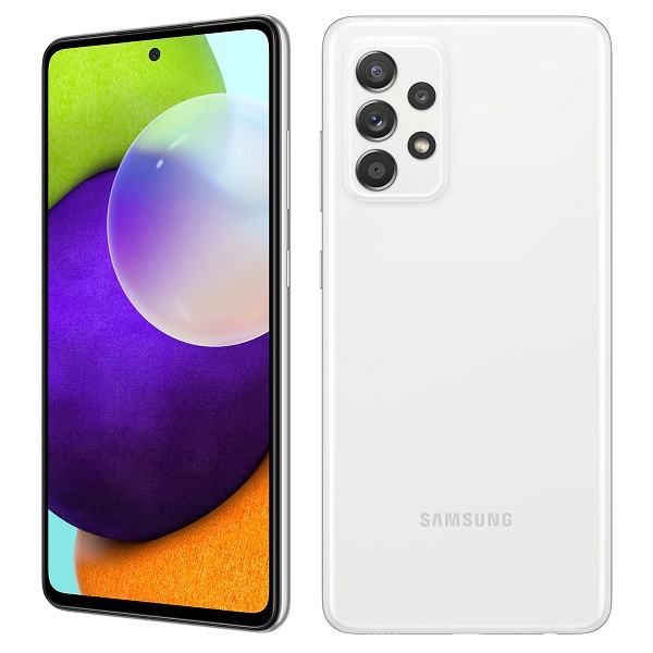 Prodaje se mobitel Samsung Galaxy A52s kao novi, bijele boje, sa 6 GB RAM i 128 GB internet pohrane.
