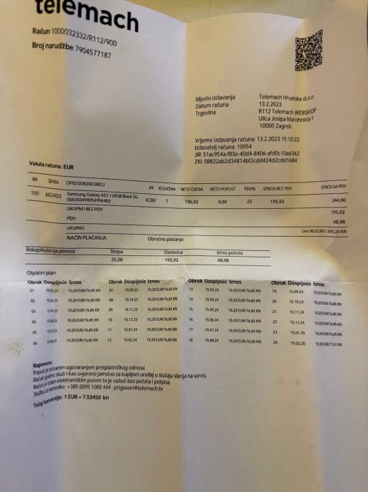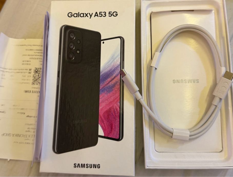 A53 5G 128GB kupljen 13.02.2023. sa kutijom, nekorištenim kablom, 2 zaštitne maske i 4 kaljena stakla. Baterija traje cijeli dan, mobitel neoštećen.