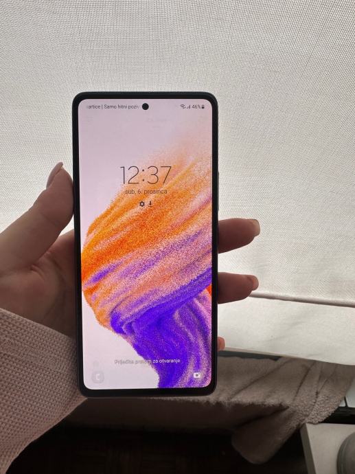 Prodajem rabljeni Samsung Galaxy A53 u crnoj boji, uređaj je u dobrom stanju. Mobitel ima moderan dizajn s kvalitetnim zaslonom i višestrukom stražnjom kamerom.