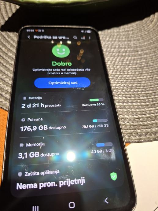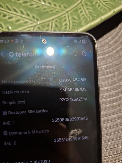 Prodajem Samsung Galaxy A54 s velikim kapacitetom memorije od 8GB RAM-a i 256GB interne pohrane. Uređaj je u crnoj boji i odličnom stanju,ima par crtica i zamjenjeno staklo na zadnjoj kameri. Baterija je izdržljiva s dobrim postotkom preostalog kapaciteta što osigurava