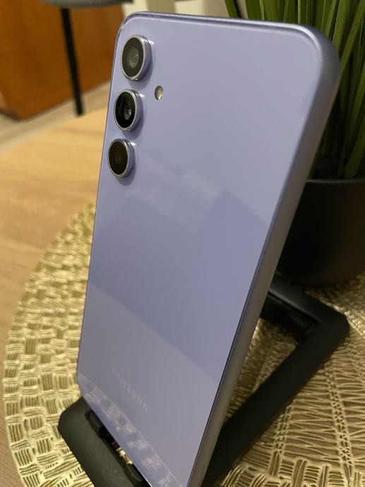 Prodajem rabljeni Samsung Galaxy A54 u ljubičastoj boji s trostrukom stražnjom kamerom. Mobitel je u odlicnom stanju