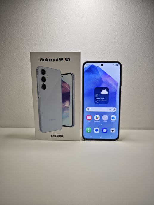 Rabljeni Samsung A55 5G 8/256Gb sa vidljivim tragovima korištenja na ekranu.