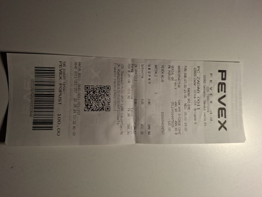 Mobitel je kupljen u Zadru, posjedujem kutiju i račun.