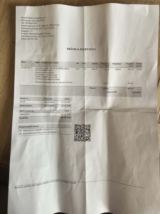Prodajem mobitel A 56 5G. 8G/256 GB. Star 4 mjeseca pod garancijom,uz mobitel ide i maskica.nezanimaju me zamjene jer je kuplje veci mobitel.Cijena 270 Eura.