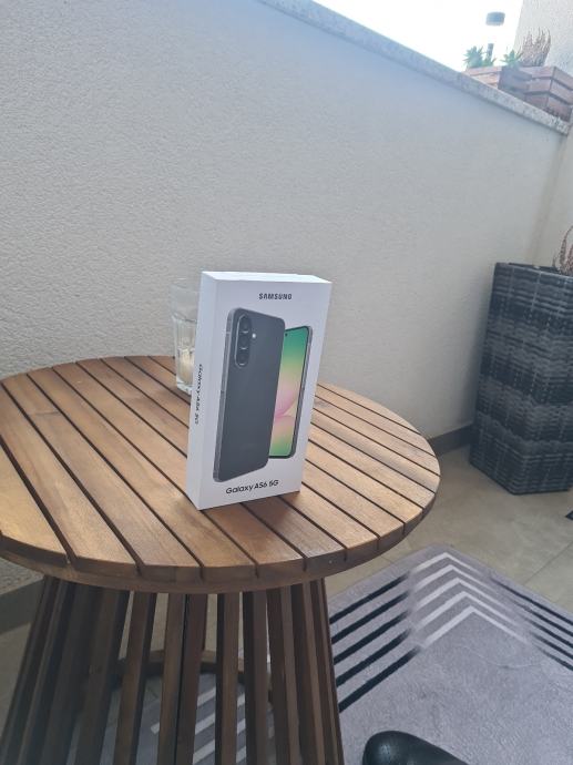 Prodajem novi Samsung Galaxy A56 5G. Uređaj je nov, u originalnom pakiranju. Na kutiji je vidljiva tamna (crna/grafitna) boja uređaja.