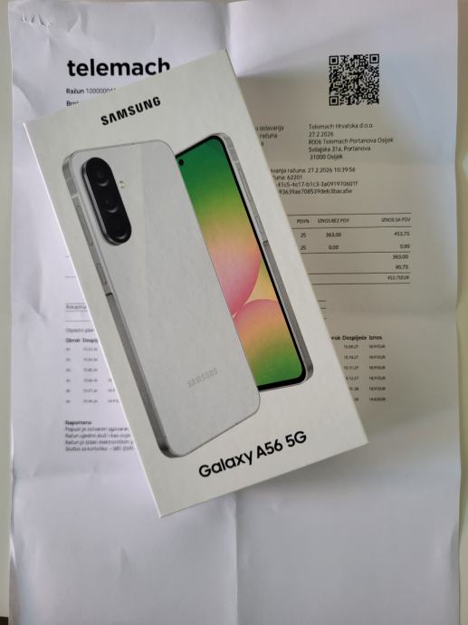 Prodajem novi i nekorišten Samsung Galaxy A56 5G,memorija je 8/256 GB. Račun i garancija od 27.02.2026. 097 615 35 72.