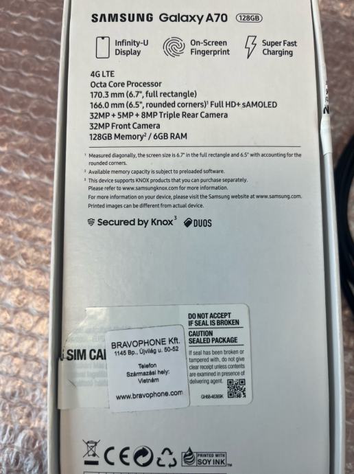 Samsung galaxy a70, ispravan, vidljivo korištenje, sve na slikama. Ekran nije napuknut na rubovima, samo oljustena boja. 128gb memorije. Osobno preuzimanje Zg. Otvoren na sve mreze, kupljen u Hrvatskoj. Sacuvana originalna ambalaža, slusalice ne koristene, kabel USB-C za punjenje novi.