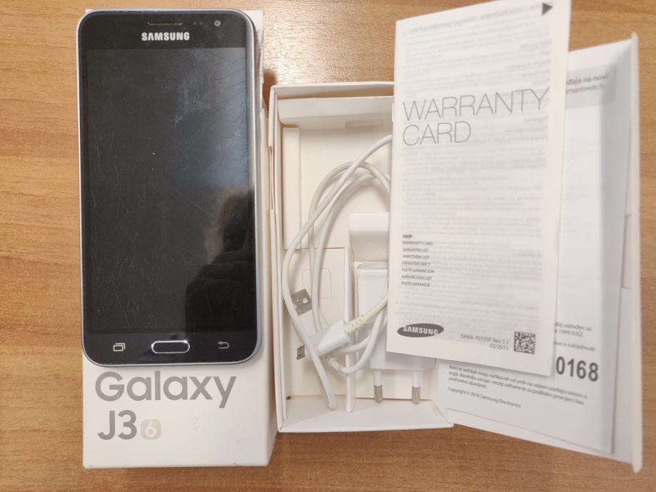 Samsung Galaxy J3, kutija i punjač. Potpuno novi ekran, baterija slaba, usb gubi kontakt.
