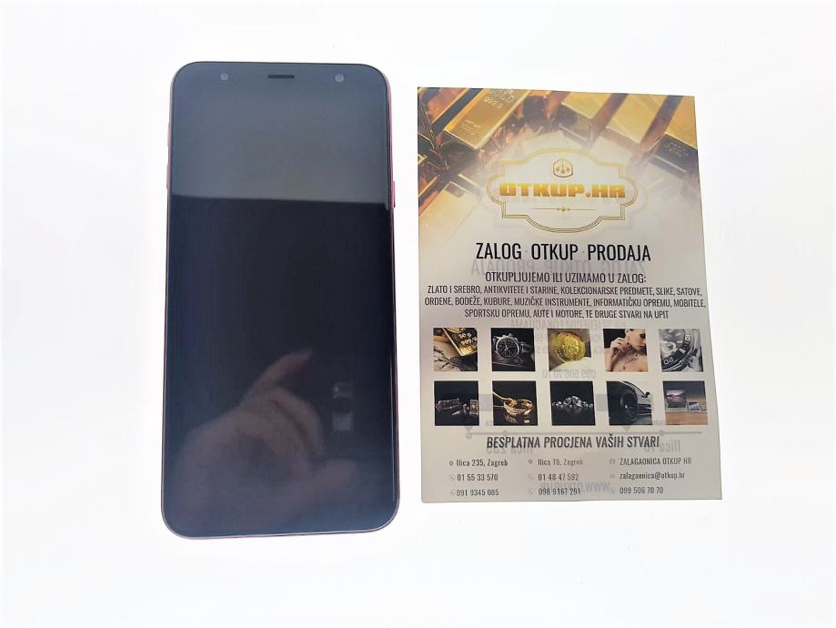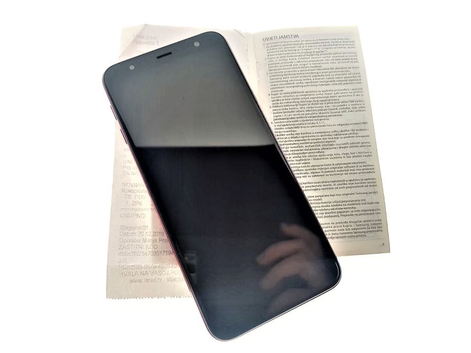 Prodajmo Samsung Galaxy J4+. Uređaj dolazi s kutijom te računom i garancijom. Kupljen je 20.12.2018. Uređaj je u dobrom stanju. Na poleđini mobitelja su vidljivi tragovi korištenja (vidljivo na slikama).