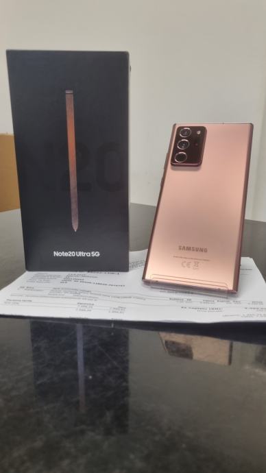 Prodaje se rabljeni mobitel, Samsung Galaxy Note 20 Ultra, bronze boja. Očuvan, kupljen u 11. mjesecu 2022. godine. Uz njega ide račun, Akg slušalice, originalni 25 w punjač, kutija, prijenosni punjač 20000 MAH, S pen radi bez poteškoća.