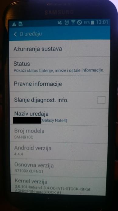 Prodajem original Samsung Galaxy Note 2 u dobrom stanju, ima malu kvrgicu na gornjem lijevom rubu (na slici). Custom ROM DN4 Android OS 4.4.4 (sučelje i funkcije Galaxy Note 4). Uz njega još ide, 1 original bijeli flip cover (malo istrošen), kopija bijeli flip cover (nekorišten), plava plastični cover, dvije folije za ekran, punjač, USB kabel, slušalice, nosač za bicikl.