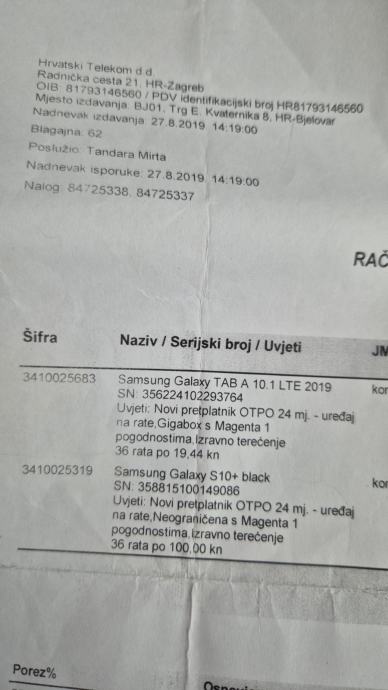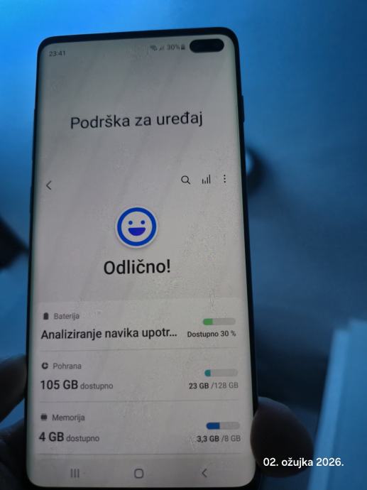 Samsung Galaxy S10+ potpuno ispravan, zadnjih par godina nekorišten, baterija promjenjena sve vidljivo iz računa, na ekranu ima jednu malu ogrebotinu koja je vrlo plitka, dužine cca 1 cm, što apsolutno ne utječe na ispravnost uređaja.