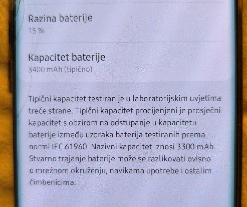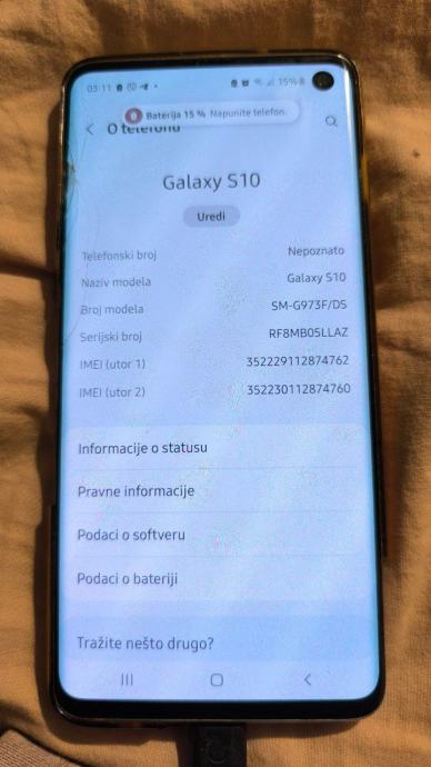 Prodajemo mobitel Samsung Galaxy S10 Duos. Rabljen s oštećenim dijelovima (gumb za pokretanje Bixbyja ispada van, pukotina na ekranu). Međutim, prilično je brz i baterija je još uvijek punjiva. Nije jako dugotrajna (izdrži dva i pol sata pod maksimalnim korištenjem) no mobitel funkcionira bez ikakvih problema, još uvijek može instalirati nove aplikacije i ažuran je. Kamera je u super stanju. Ima ulaz za slušalice. Mogu dvije SIM kartice u njega i memorijska kartica. Kupljen krajem 2019.
