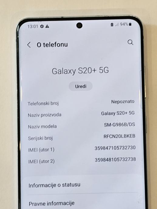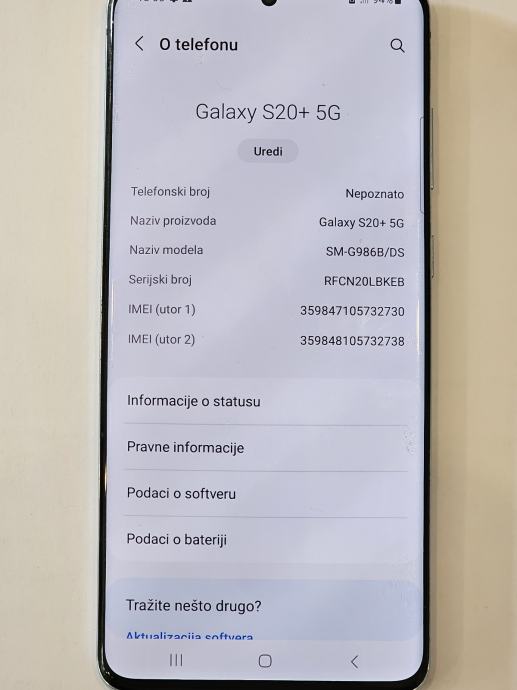• Model: Samsung Galaxy S20+ 5G SM G986B/DS (Dual SIM, europsko/globalno izdanje).