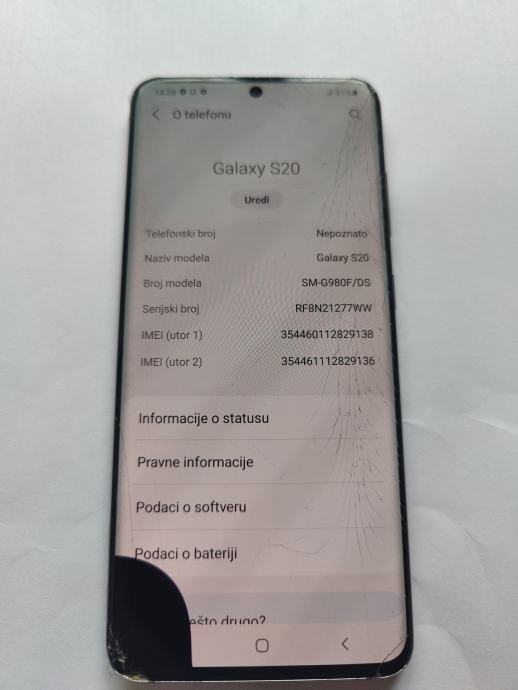 Samsung Galaxy S20 ,dual sim,8 GB RAM,128 GB ROM, bez punjača