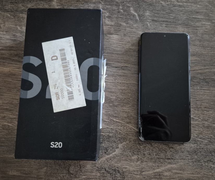 Na prodaju potpuno ispravan ali razbijen u ćošku (fotka 1 i 2) Samsung Galaxy S20 sa fotografija.