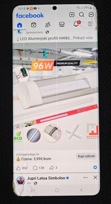 GALAXY S20 PLUS koristi se bez greške iako ima vertikalne linije na displayu nastale zbog pada na pod. Mobitel je tada bio 2 mjeseca star a garanciju za ovo ne priznaju, mob. je i dalje odličan u svemu