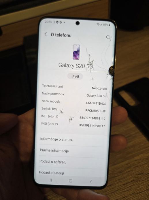 Prodajem Samsung S20 5G, razbijen ekran (povremeno trepće, većinom dok se puni). Touch radi.