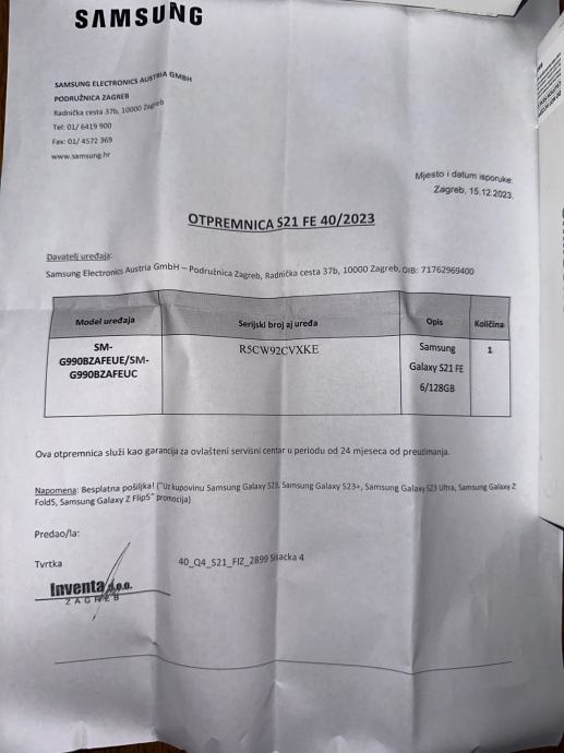 Dolazi s kutijom, racunom, kablom i maskicom.