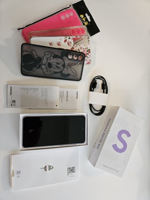 Samsung galaxy s21 FE 5G , lavender boja , garancija istekla, mobitel je u perfektnom stanju, sve ispravno, bez ijedne točkice, doslovno kao nov, , u kompletu sve što je na slici