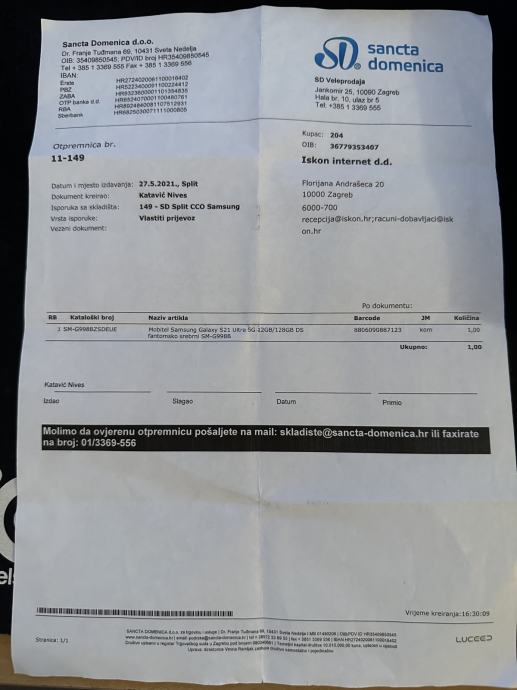 Uz mobitel ide sva oprema. Kutija, kabel i račun.