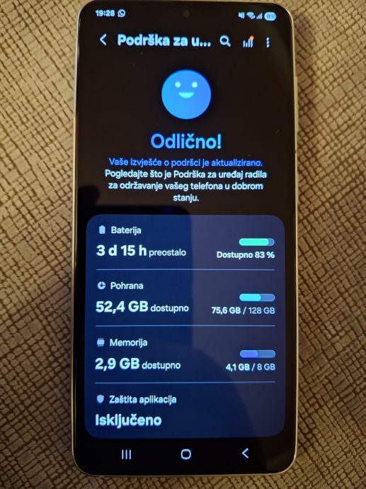 Mobitel u ispravnom stanju. Na ekranu u desnom gornjem djelu ima crticu (ogrebotinu laganu od ključeva iz džepa).