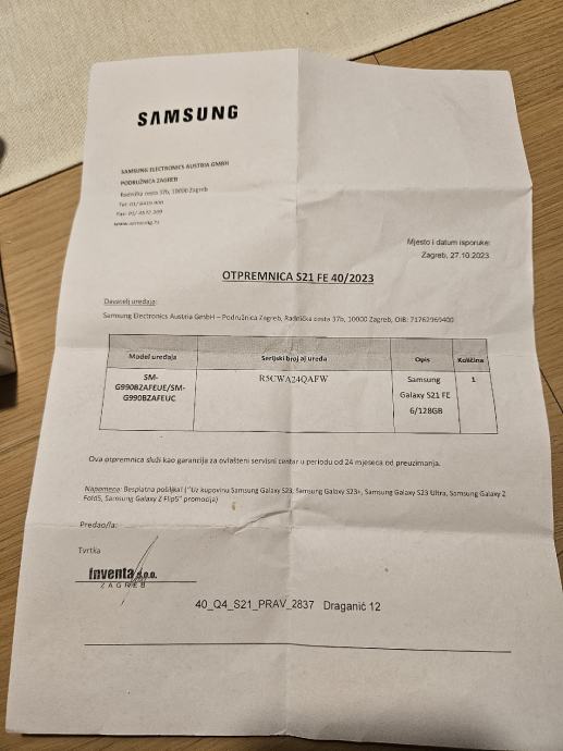 Inače mobitel u fizičkom stanju odlično očuvan. 2 maskice,kutija i otpremnica sa garancijom do 27.10.2025g.