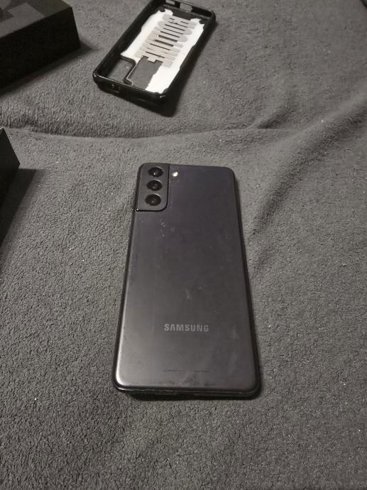 Prodajem rabljeni Samsung Galaxy S21 5G 128GB u crnoj boji s originalnim pakiranjem. Uređaj ima trostruku stražnju kameru i očuvan je bez većih oštećenja.