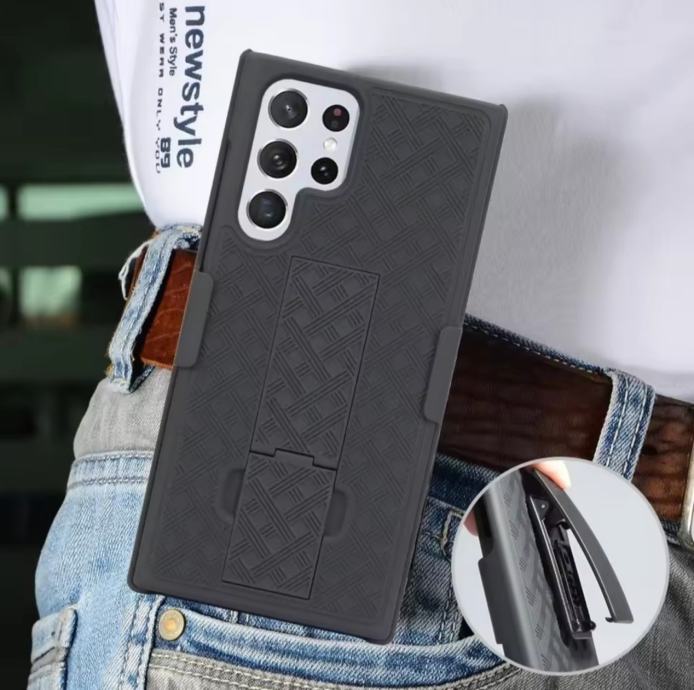 Prodajem robustnu (heavy-duty) maskicu za Samsung Galaxy S22 Ultra s integriranom kopčom za remen i stalkom za gledanje videa.