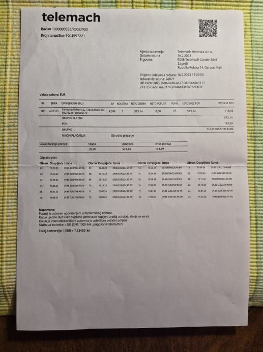 Mobitel aktiviran 17.2.2023. godine, očuvan, razlog prodaje je prelazak na noviji model,