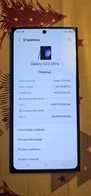 Prodajem dva mobitela Samsung S23 Ultra jedan je 512 GB memorije cijena 360 EUR-a, drugi 256 GB memorije cijena 350 EUR-a.