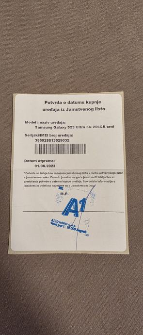 Kupljen je 01.08.2023. u A1 centru u Zagrebu.