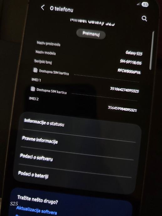 Mobitel ima najnoviju verziju softwera (istu što koristi i S25) i dobivat ce ih još u buducnosti barem 2,3 godine. Mobitel je brz i što je važno da je mobitel korišten najčešće u unutarnjem prostoru a ne vani što znaci da nije doživio padove i da se u utoru za punjenje nije nakupljala razno razna priljavština.