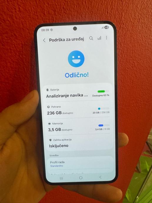 Prodajem Samsung Galaxy S23 Plus s 256 GB unutarnje memorije, u crnoj boji. Pohrana je 256 GB, od čega je trenutno slobodno oko 236 GB. Memorija RAM-a iznosi 8 GB. Mobitel funkcionira besprijekorno.