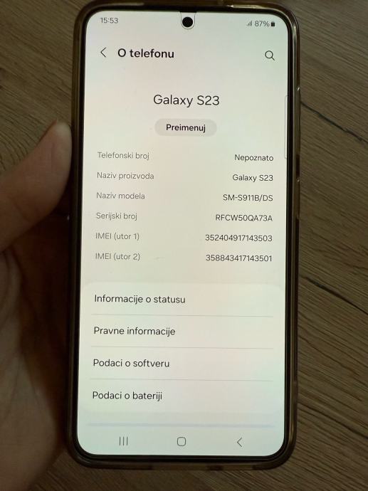 Prodajem rabljeni Samsung Galaxy S23. Kupljen 7/23, bez tragova korištenja, dolazi sa zaštitnim staklom i maskicom te originalnim punjačem.