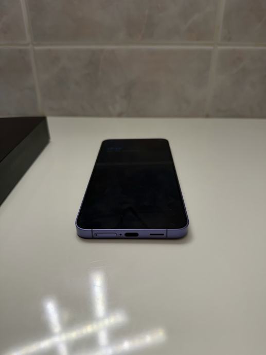 Prodajem rabljeni Samsung Galaxy S24+ u ljubičastoj boji s 12GB RAM-a i 256GB memorije. Uređaj dolazi u originalnom pakiranju kako je prikazano na slici. Telefon je u odličnom stanju s elegantnim dizajnom i trostrukom stražnjom kamerom.