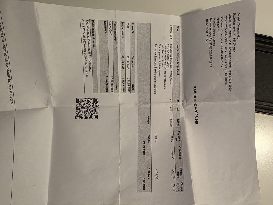 Prodajem Samsung Galaxy S24 Ultra u Titanium black boji. Mobitel radi besprijekorno i nema nikakvih tragova korištenja (vidljivo i na slikama). Dolazi s originalnom kutijom i priborom.
