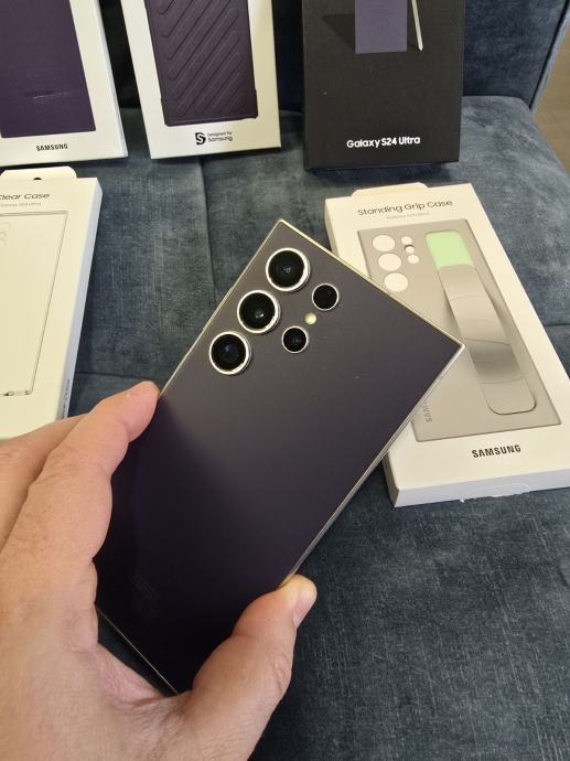 Prodajem mobitel Samsung Galaxy S24 Ultra 12/256 GB u tamno ljubičastoj boji, titanium violet. Stanje izvrsno, radi doslovno kao prvog dana. Nema ogrebotina, oštećenja. Uz mobitel dajem i 4 originalne Samsung maskice, vidljivo na slici. Mobitel će biti dostupan za 2-3 dana kada dobijem novi S26 Ultra i prebacim sve podatke...