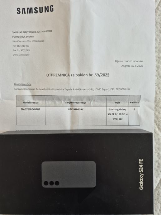 Samsung Galaxy S24 FE 8/128GB graphite 6,7" nov neraspakiran