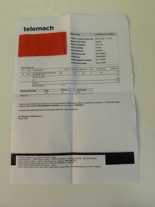 Uređaj je kupljen 29.12.2025 te posjedujem račun i jamstvo.