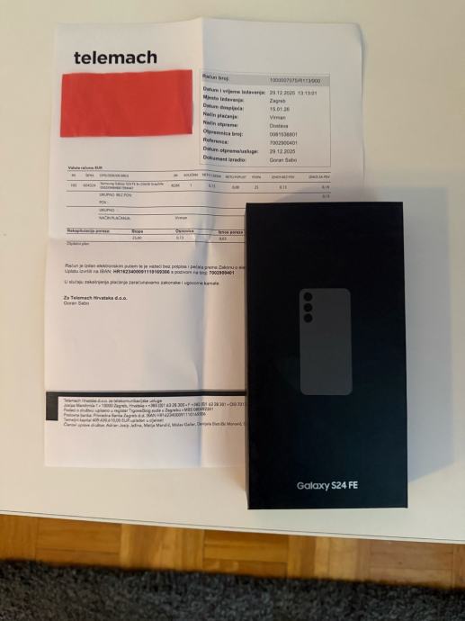 Prodajem novi zapakirani Samsung Galaxy S24FE, 8+256GB, graphite boja.