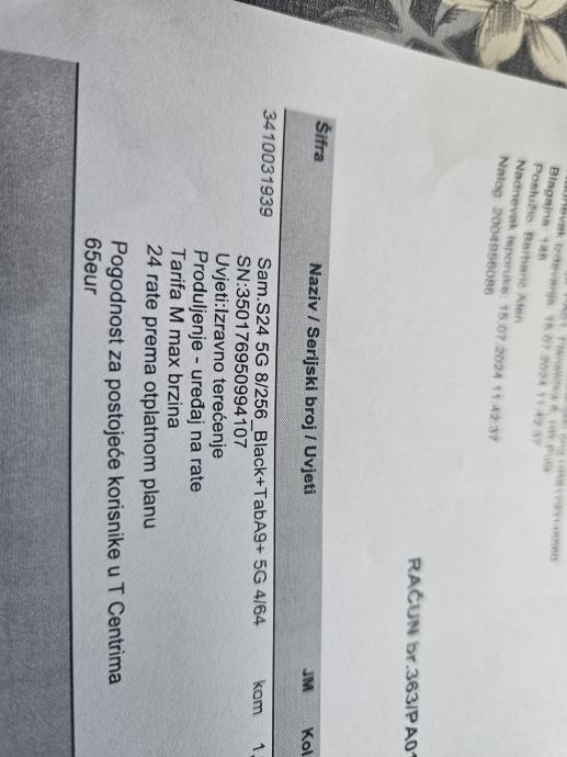 Prodajem navedeni mobitel samsung galaxy s 24 kupljen u puli u t comu 7mj 2024god ima garanciju prilozen racun u slikama moguća zamjena za građevinski materijal itd