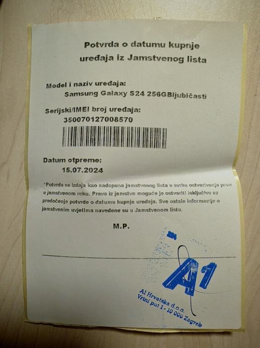 Prodajem odlično očuvan Samsung Galaxy S24 u boji Cobalt Violet(ljubičasta) , 8 GB RAM / 256 GB memorije. Mobitel je 10 od 10 te nema ni najmanju pikicu. Garancija do 07/26. Potpuno ispravno stanje, bez jedne mane. Vrhunski AMOLED zaslon