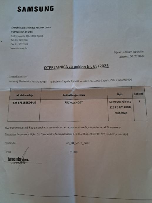PRODAJEM NOVI NERASPAKOVANI MOBITEL SAMSUNG S25 FE