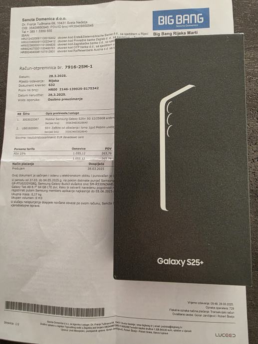 Mob kupljen 28.3.25 u santa domenici. Garancija od loma stakla do 28.3.26 i garancija na mobitel do 28.3.27. Komplet oprema i racun. 256GB. Mobitel doslovce nov, bez ijednog traga korištenja. Bez zamjena.