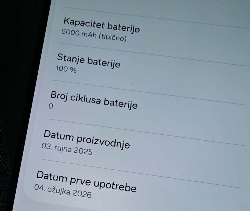STANJE NOVO, SAMO AKTIVIRAN, 0 CIKLUSA PUNJENJA
