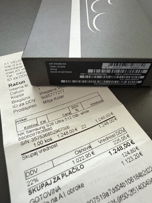 Kupljen je u A1 Slovenija, prilažem originalni račun koji vrijedi kao garancija.