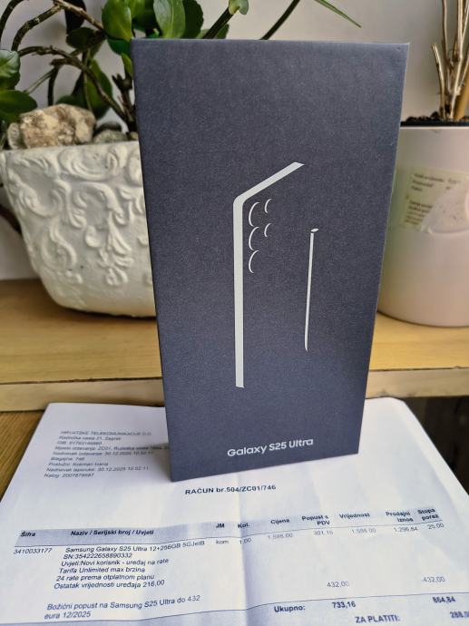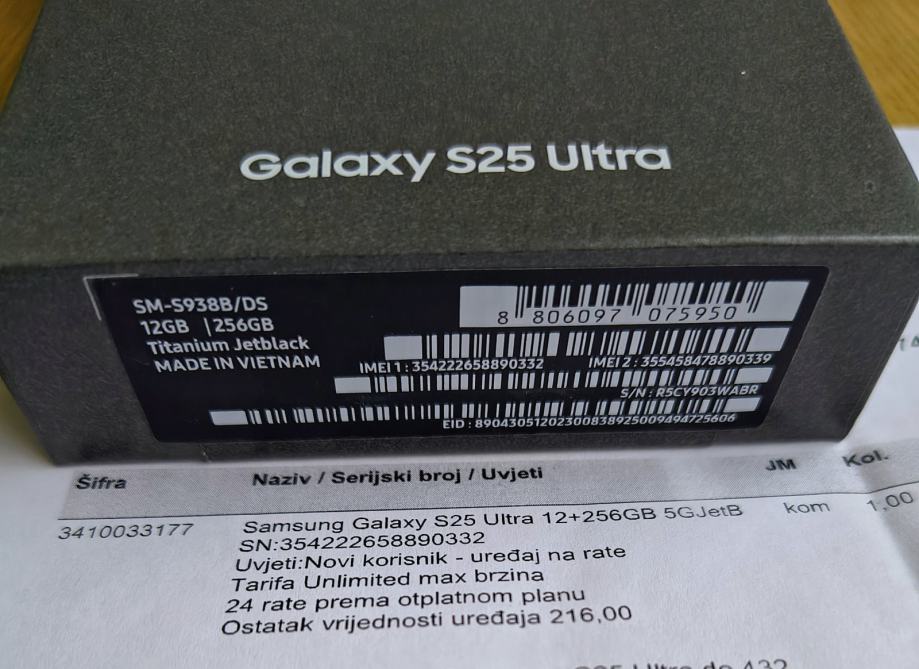Samsung S25 Ultra 256GB Crna boja Novo Zapakirano Garancija