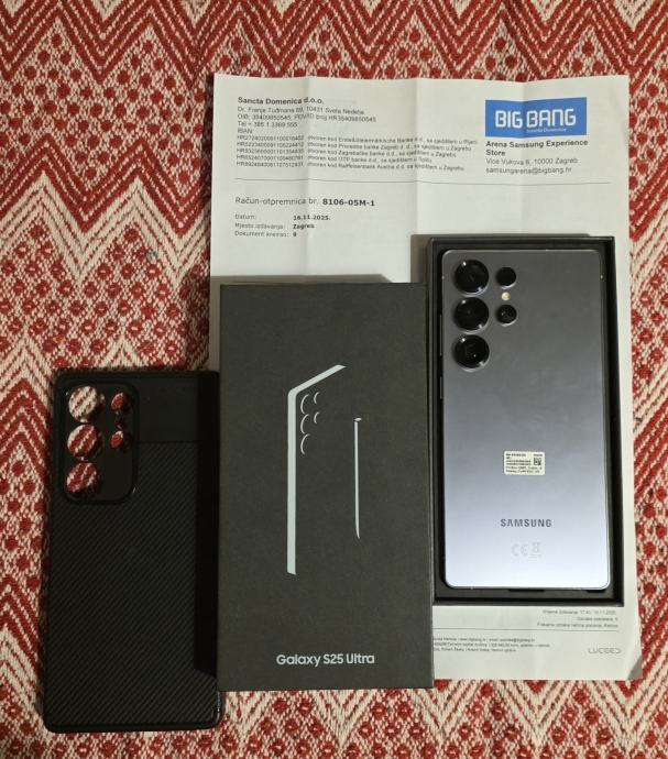 Prodajem u silberblue boji Samsung S25 ultru sa 12gb rama i 256gb memorije. Uređaj je u stanju novoga bez tragova korištenja (4 ciklusa punjenja). Kupcu na poklon maskica i na ekranu je mobileoutfiters privacy folija. Račun i garancija BigBang. Cijena 770€. Cijena u zamjeni veća. Primopredaja zg, ostalo po dogovoru. Kontakt broj: 092-2142/607. Može poziv, sms, viber, whatsapp.