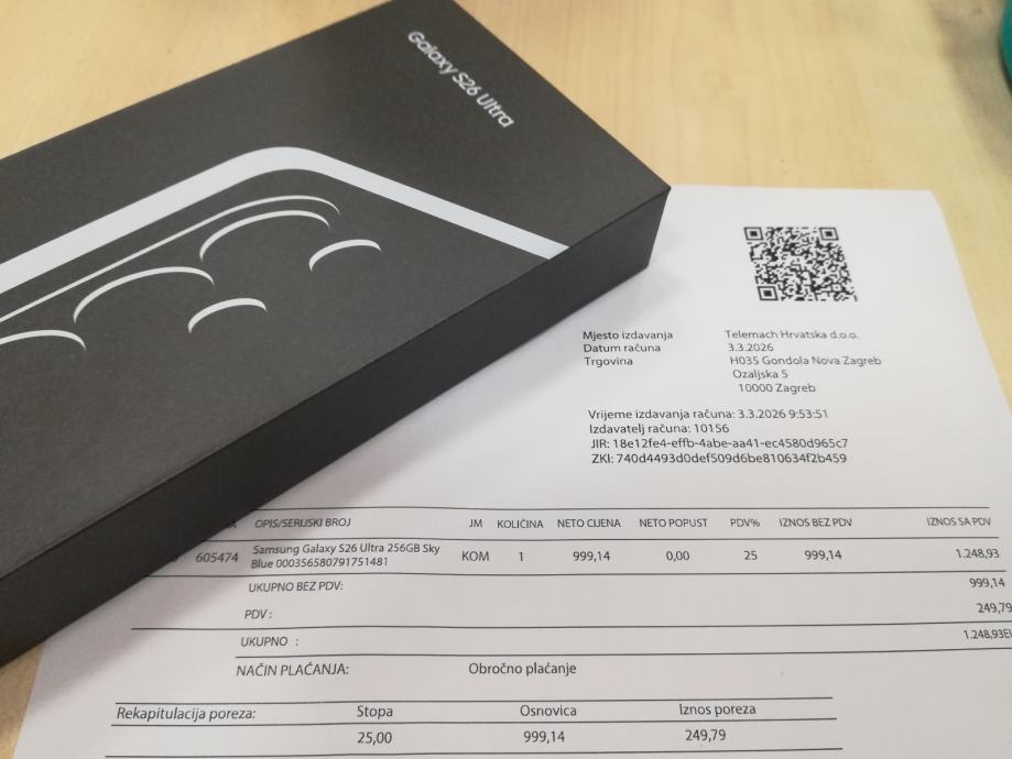Prodajem novi samsung s26 ultra 256 gb zapakirani plave boje.kupljen danas,račun uz mob.CIJENA JE FIXNA 1200 EURA.BEZ ZAMJENA I MOŽETE GA PREUZETI DO 22 SATA NA JANKOMIRU.HVALA